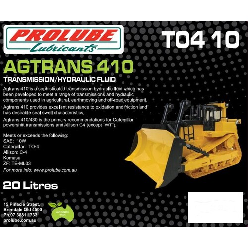 Manufactured right here in Australia, Prolube Agtrans 410 SAE 10 is tailored to excel in the unique operating conditions of the Australian environment. This superior transmission and hydraulic fluid have been meticulously crafted to ensure optimal performance and longevity, making it the ideal choice for a wide range of applications. Meeting the rigorous requirements of Allison C4 and CAT TO-4 Prolube Agtrans 410 also complies with ZF TE-ML03C, ZF TE-ML07F, and various other industry standards. This ensures that your equipment operates at peak efficiency, minimizing wear and maximizing service life. Our commitment to quality extends beyond the product itself – we take pride in being able to deliver Prolube Agtrans 410 to customers all over Australia. Whether you're in Rockhampton, Mackay, Cairns, or the Atherton Tablelands area, FCP Solutions is your one-stop destination for premium engine consumables, with swift and reliable nationwide delivery.